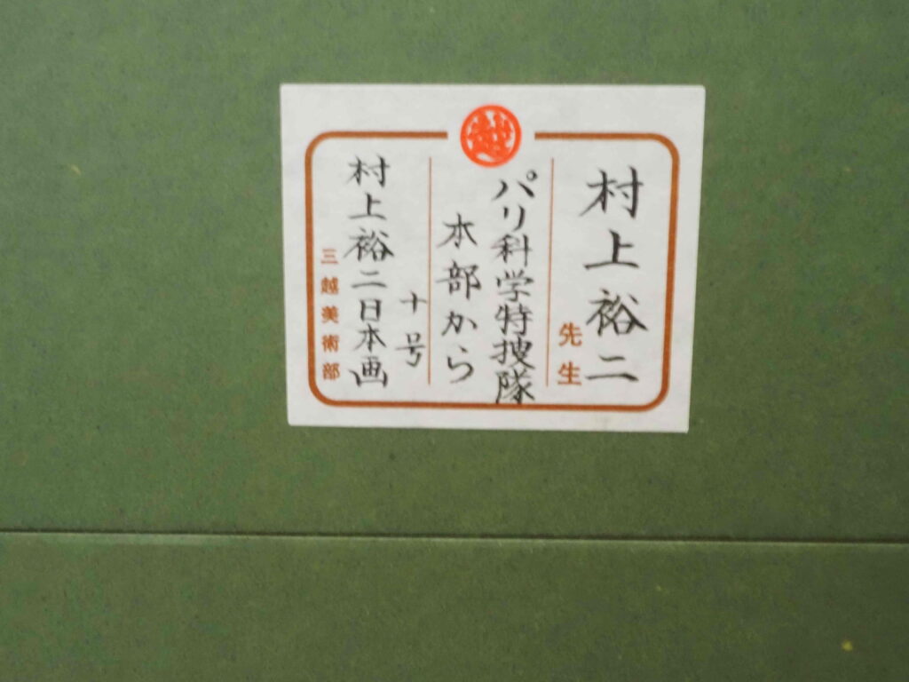 本作は、日本の特撮文化を代表するウルトラマンシリーズに登場する「科学特捜本部」の世界観を手がかりに、都市と人間の精神風景を描いた作品である。科学特捜本部は、未知の存在に対峙する理性と希望の象徴であり、本作においては具体的な物語や人物としてではなく、都市に内在する秩序や緊張感として表現されている。村上は、線や色彩を重ねることで、現代都市が抱える理性と不安、分析と直感の交錯を可視化する。日本画という伝統的な技法を用いながら、特撮という現代神話を精神性の次元へと昇華させた一作である。